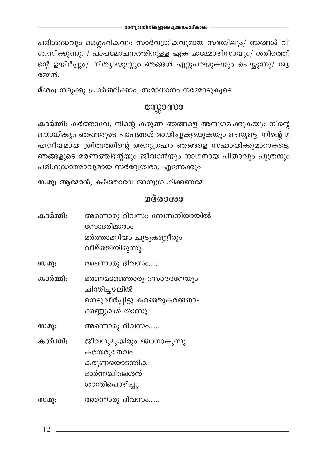 Funeral Rites of Religious Sisters PDF | സന്യാസിനികളുടെ മൃതസംസ്കാരം