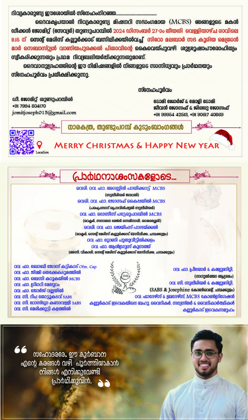 Dn Jomit Thunduparambil MCBS | Priestly Ordination | 27 December 2024