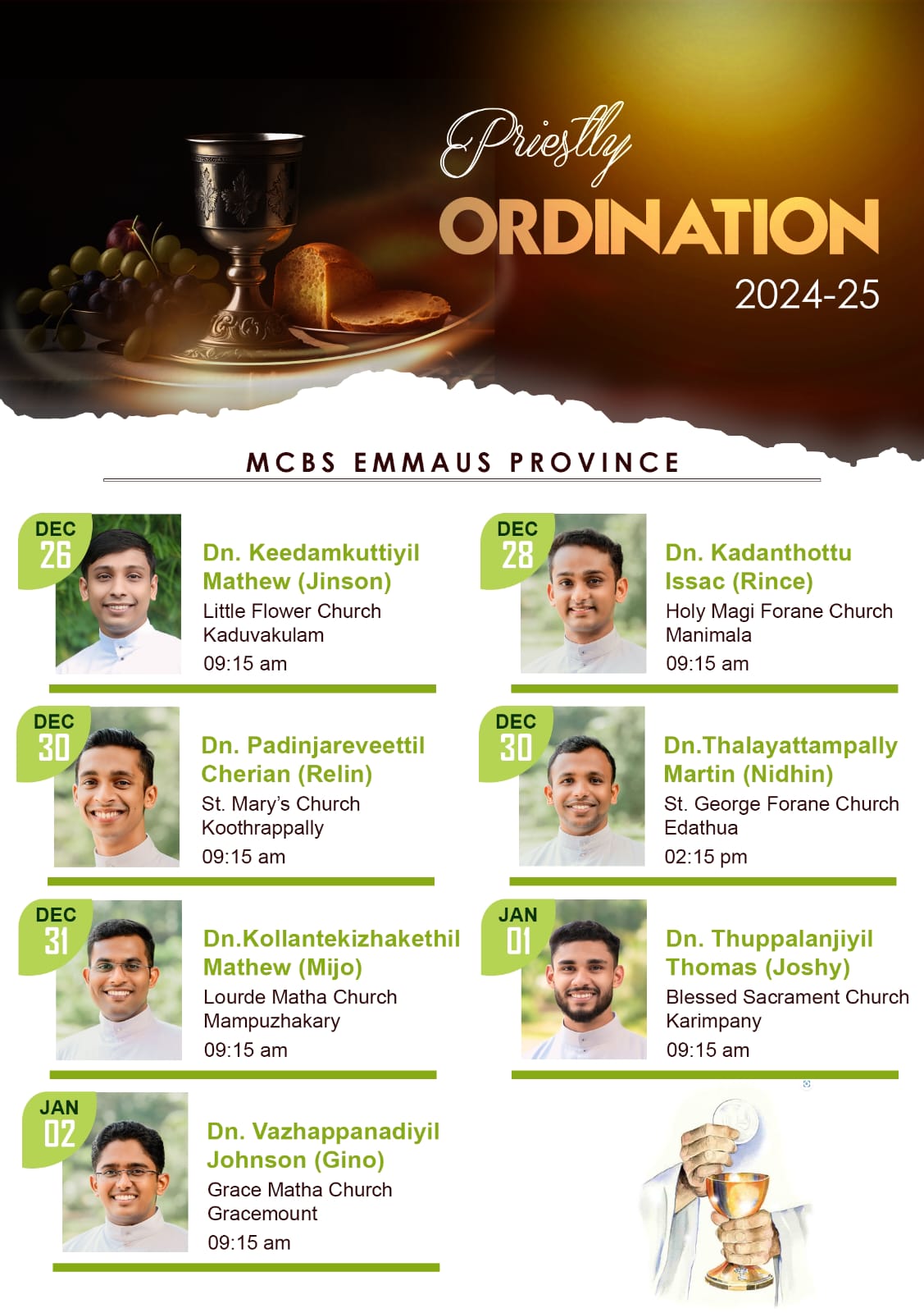 2024-25 Priestly Ordinations and First Holy Qurbanas of Deacons from MCBS Emmaus Province, Kottayam.