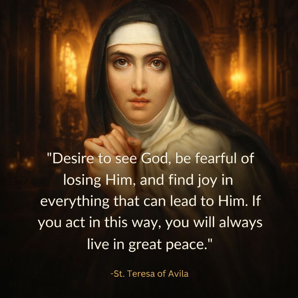 St. Teresa of Avila – Desire to see God, be fearful of losing Him, and find joy in everything that can lead to Him. If you act in this way, you will always live in great peace.