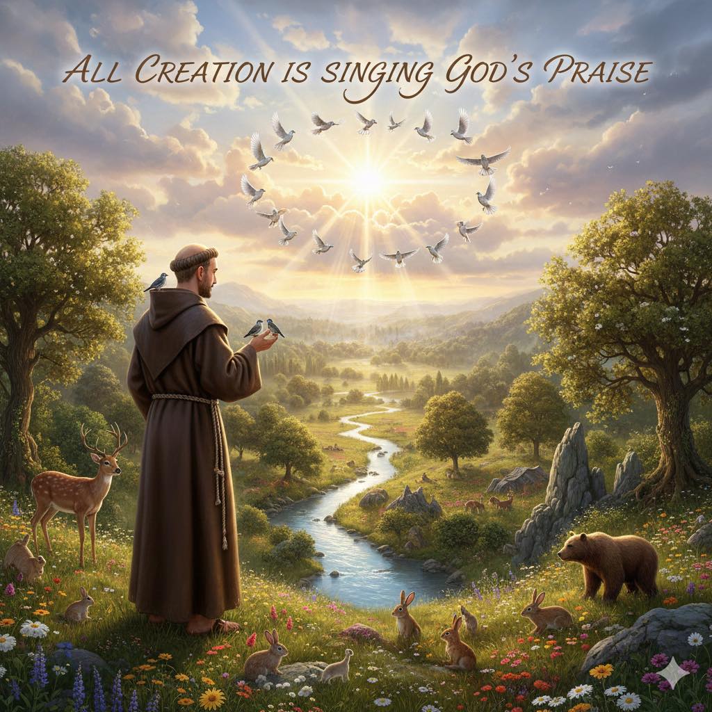 ഫ്രാൻസിസിൻ്റെ കാഴ്ചപാടിൽ:“സൃഷ്ടിയിലെ ഓരോ ജീവിയും ദൈവസ്നേഹത്തിന്റെ അടയാളമാണ്.” അതുകൊണ്ടാണ് അദ്ദേഹം മൃഗങ്ങളോടും പക്ഷികളോടും പോലും സ്നേഹത്തോടെ സംസാരിച്ചത്.