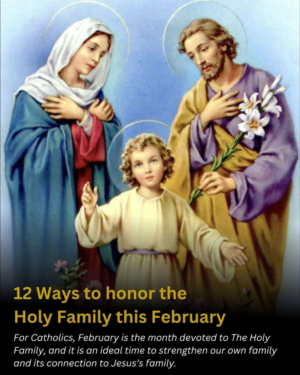 For Catholics, February is the month devoted to The Holy Family, and it is an ideal time to strengthen our own family and its connection to Jesus’s family. Continuing our monthly series on ways to showcase each month’s Catholic theme in your life, here are 12 ways you can align your family to the Holy Family this February: