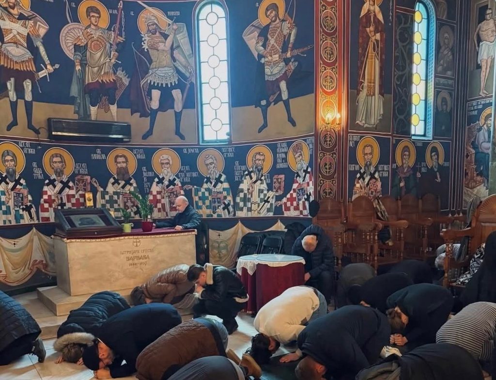 When performed within the liturgical assembly, prostration also possesses an ecclesial dimension. The entire community bows together, confessing collectively its need for salvation. The Church becomes visibly what she professes spiritually: a repentant yet hope-filled Body awaiting full restoration. Schmemann insists that corporate worship forms ecclesial identity; shared gestures shape shared faith.¹³ In this sense, metania is not an isolated devotional act but an expression of communion.