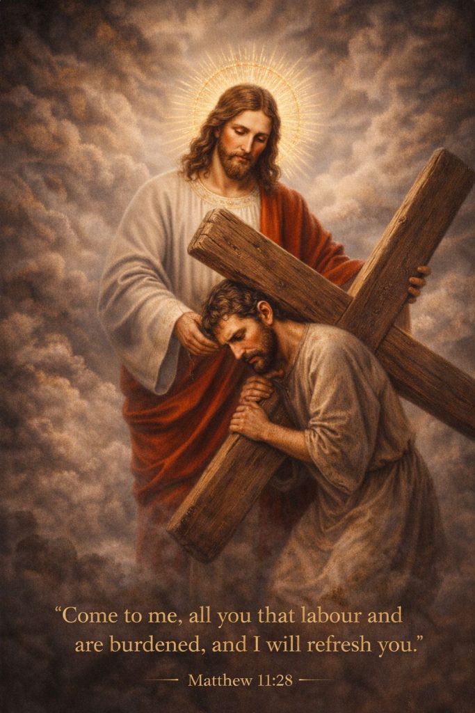 The Christian life is not free from suffering. Our Lord Himself warned His followers that the path to heaven passes through trials, sacrifices, and crosses. Yet in the midst of these burdens, Christ does not abandon those who seek Him. Instead, He invites every weary soul to come to Him with trust and confidence. In moments of sorrow, temptation, and hardship, the faithful must remember that Christ walks beside those who carry their crosses with patience and faith.