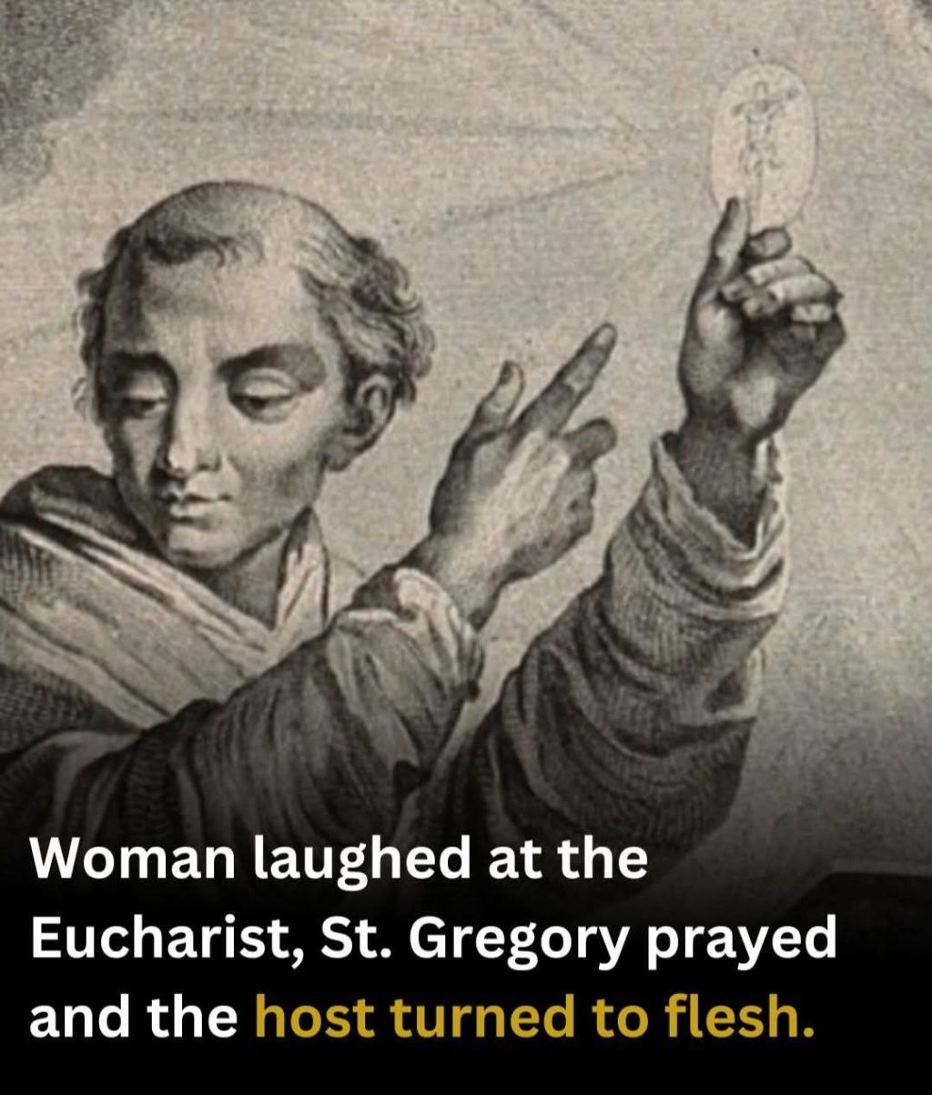 𝘞𝘩𝘦𝘯 𝘢 𝘸𝘰𝘮𝘢𝘯 𝘭𝘢𝘶𝘨𝘩𝘦𝘥 𝘢𝘵 𝘵𝘩𝘦 𝘌𝘶𝘤𝘩𝘢𝘳𝘪𝘴𝘵, 𝘵𝘩𝘪𝘯𝘬𝘪𝘯𝘨 𝘪𝘵 𝘸𝘢𝘴 𝘰𝘯𝘭𝘺 𝘣𝘳𝘦𝘢𝘥, 𝘚𝘵. 𝘎𝘳𝘦𝘨𝘰𝘳𝘺 𝘱𝘳𝘢𝘺𝘦𝘥 𝘢𝘯𝘥 𝘵𝘩𝘦 𝘩𝘰𝘴𝘵 𝘵𝘶𝘳𝘯𝘦𝘥 𝘵𝘰 𝘧𝘭𝘦𝘴𝘩.