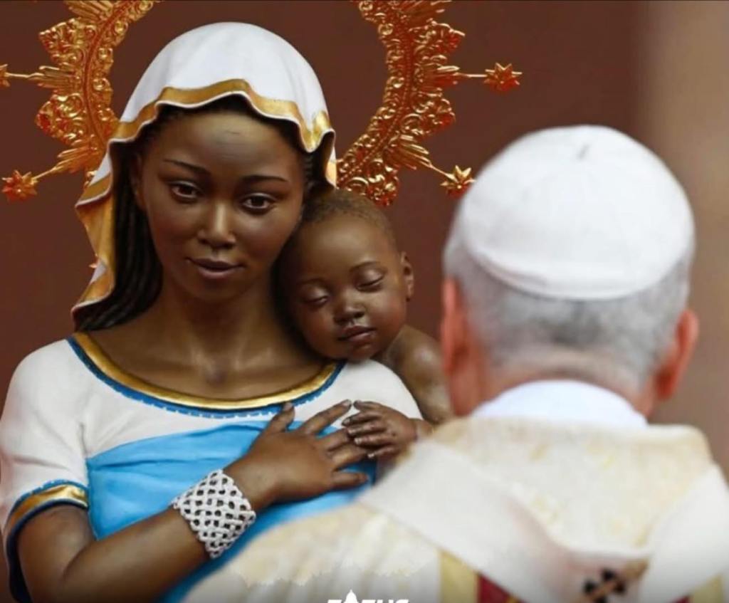 ഇക്വട്ടോറിയൽ ഗിനിയിൽ മാൽബോ സ്റ്റേഡിയത്തിൽ നടന്ന അന്തിമ വിശുദ്ധ കുർബാന. അതിനു ശേഷം, ബിസിലയുടെ മാതാവിൻ്റെ (Our Lady of Bisila) യുടെ മനോഹര രൂപത്തിന്റെ മുമ്പിൽ പരിശുദ്ധ പിതാവ് സ്വർലോക രാജ്ഞി ആനന്ദിചാലും എന്ന പ്രാർത്ഥന് ചൊല്ലി.